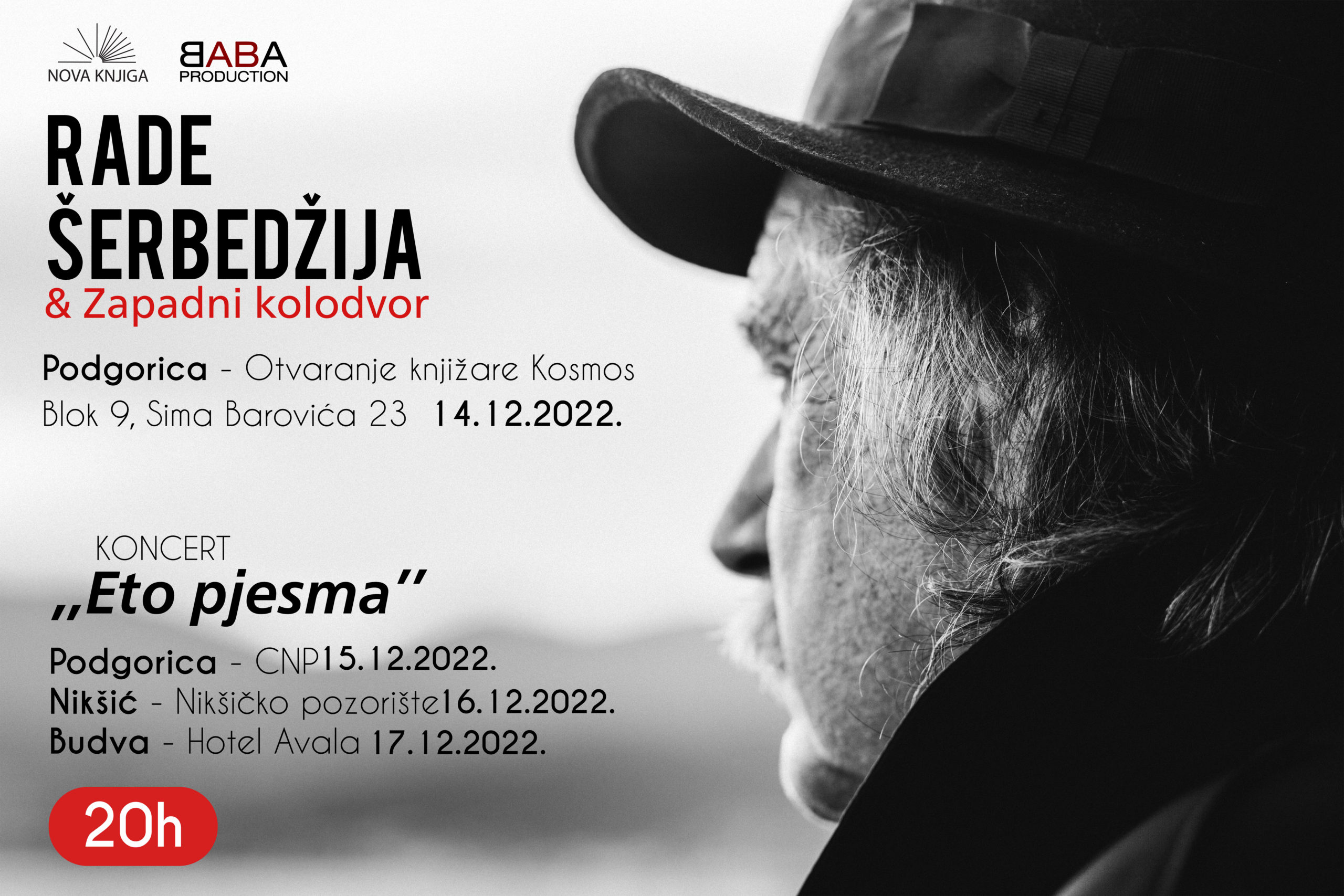 Rade će boraviti četiri dana u Crnoj Gori i tom prilikom će otvoriti knjižaru Kosmos u bloku 9, u okviru Zimskog salona knjiga BOOK-a i održati 3 koncerta u Podgorici, Nikšiću i Budvi.